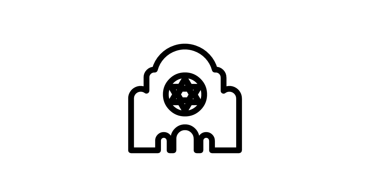 The synagogue icon represents a Jewish place of worship and community gathering.