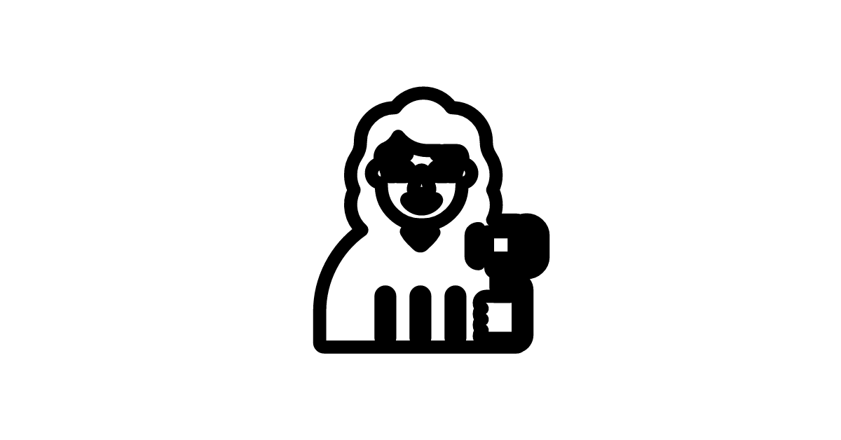 The woman-judge icon represents a female judge or a woman in a position of legal authority, often associated with justice, law, or decision-making.
