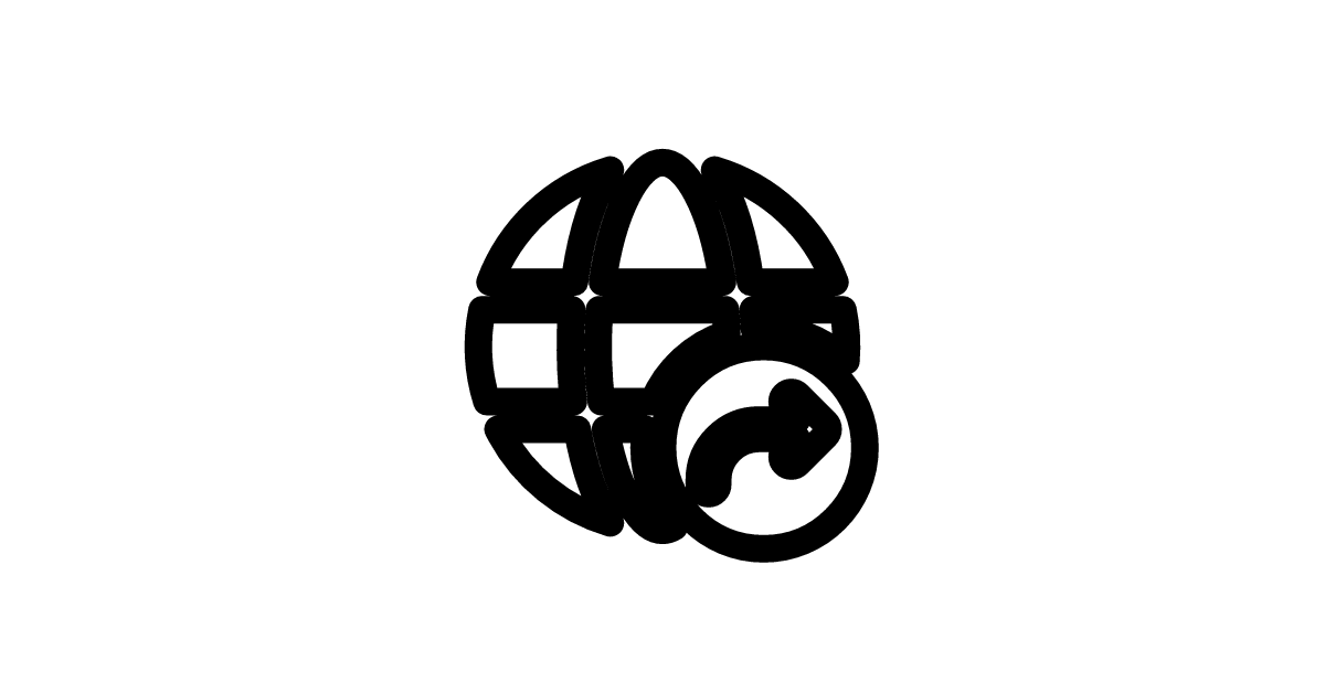 The globe arrow forward filled icon represents a prominent navigation element used to indicate movement to a different location or direction on a map or globe.