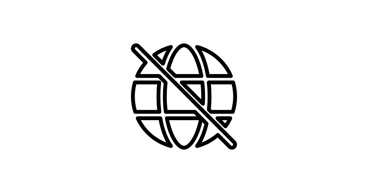The globe-off-48-filled icon represents a filled globe with a red circle and a line through it, indicating a 'no' or 'off' status in a UI or interface context.