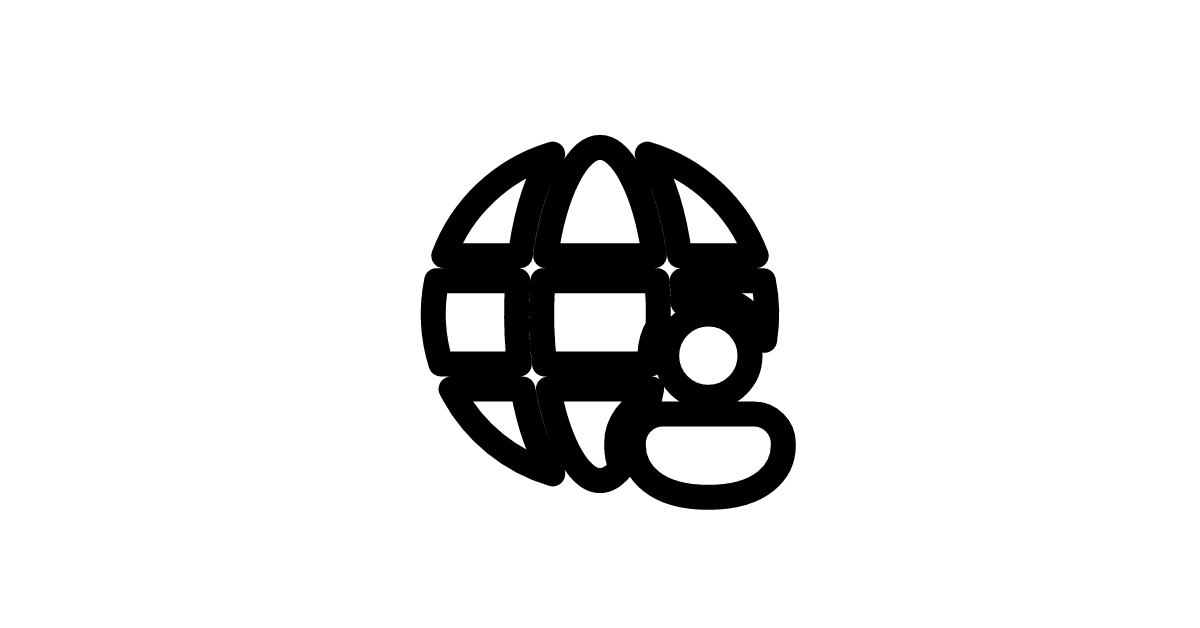The globe-person-24-filled icon represents a filled globe with a person, indicating a connection between a person and the globe in a UI or interface context.