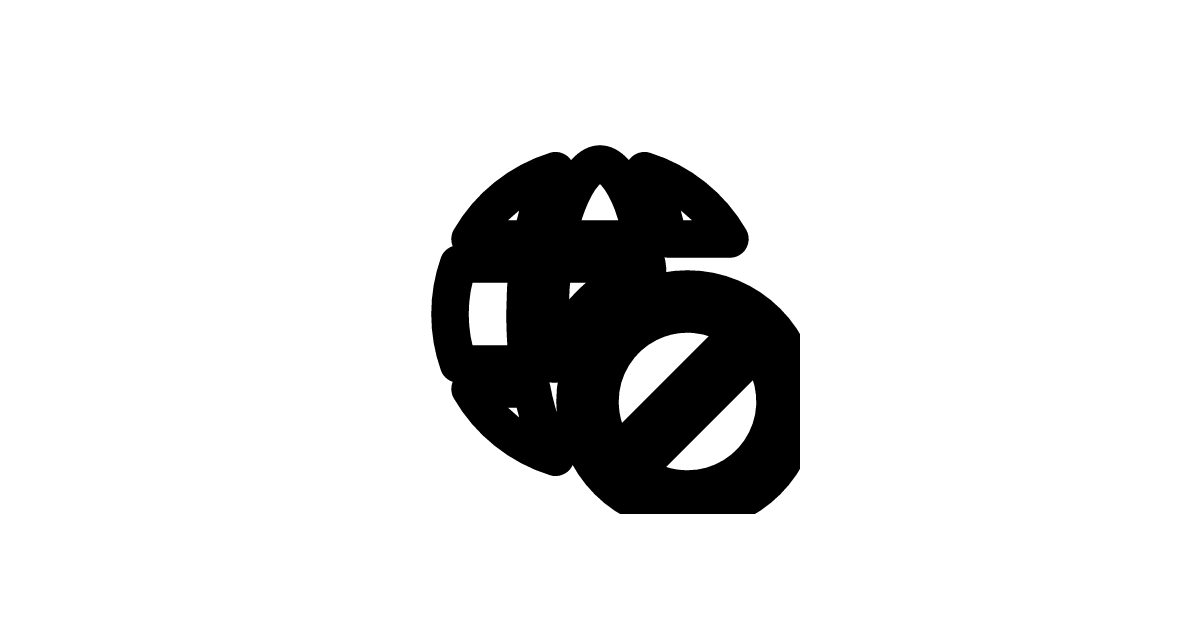 The globe-prohibited-16-filled icon represents a globe with a prohibition symbol, indicating restriction or ban on a global scale.