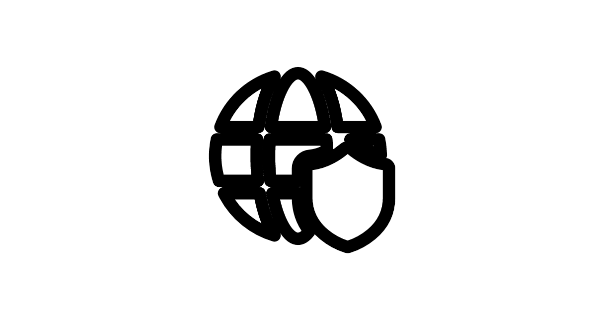 The globe shield filled icon represents a shield protecting a globe, symbolizing security, protection, and safety in a UI or mixed grid context.