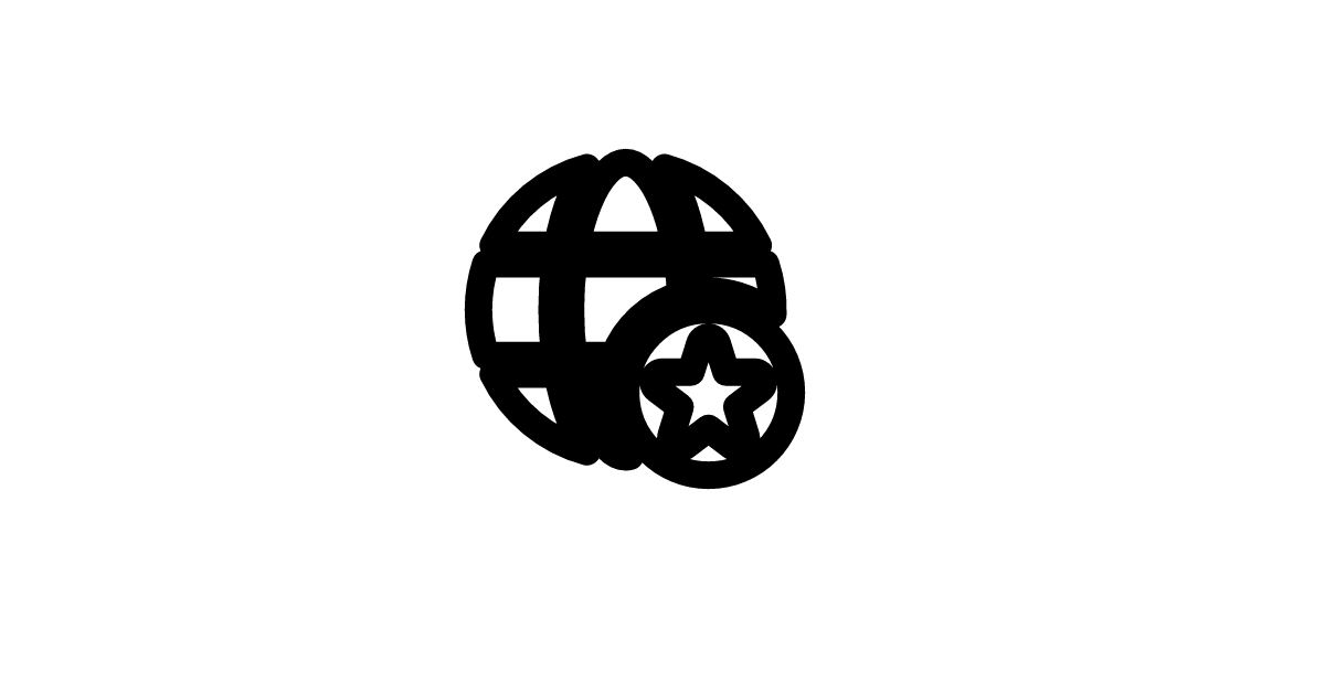 The globe star filled icon represents a star rating or favorite icon related to a globe, symbolizing excellence, quality, or preference in a UI or mixed grid context.