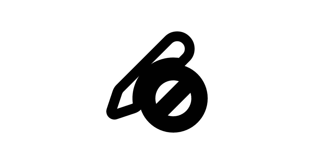 The pen-prohibited-16-filled icon represents a pen tool with a prohibition or restriction symbol, often used in digital design and editing applications to indicate editing is not allowed.