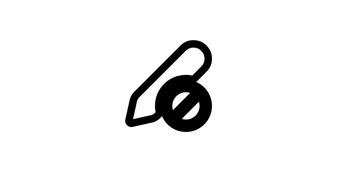 The pen-prohibited-20-filled icon represents a pen tool with a prohibition or restriction symbol, often used in digital design and editing applications to indicate editing is not allowed, with a filled style.