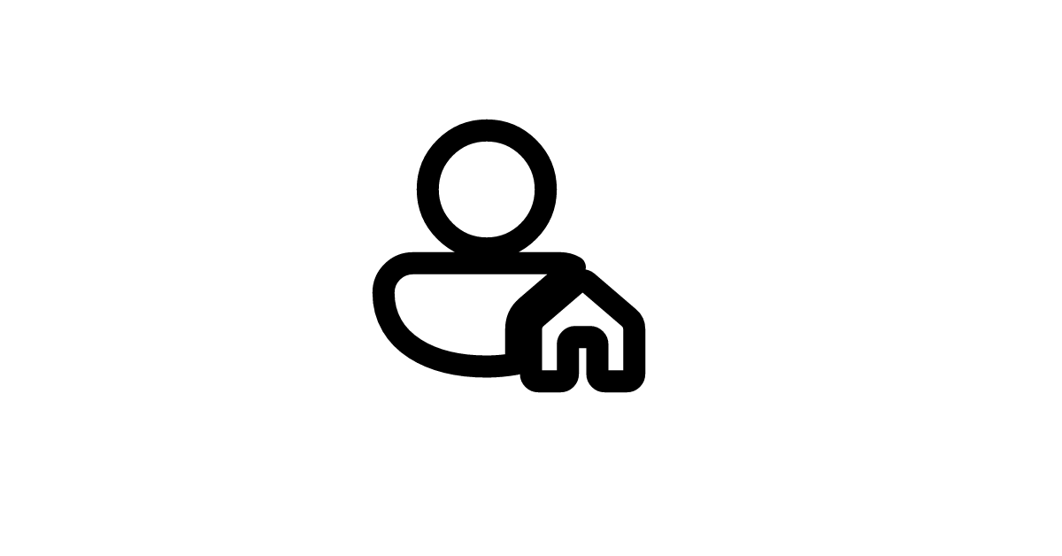 The person-home-20-filled icon represents a user or person profile associated with a home or house in a filled style, often used in navigation or profile sections.