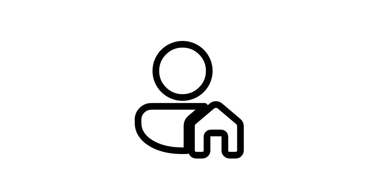 The person-home-28-filled icon represents a user or person profile associated with a home or house in a filled style, often used in navigation or profile sections.