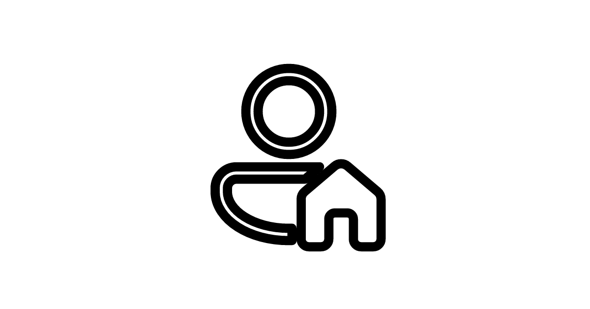 The person-home-32-regular icon represents a user or person profile associated with a home or house in a regular or outline style, often used in navigation or profile sections.
