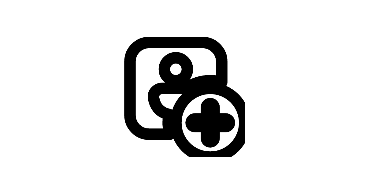The person-square-add-16-filled icon represents a filled square person icon with an add symbol, commonly used for adding new users or profiles.