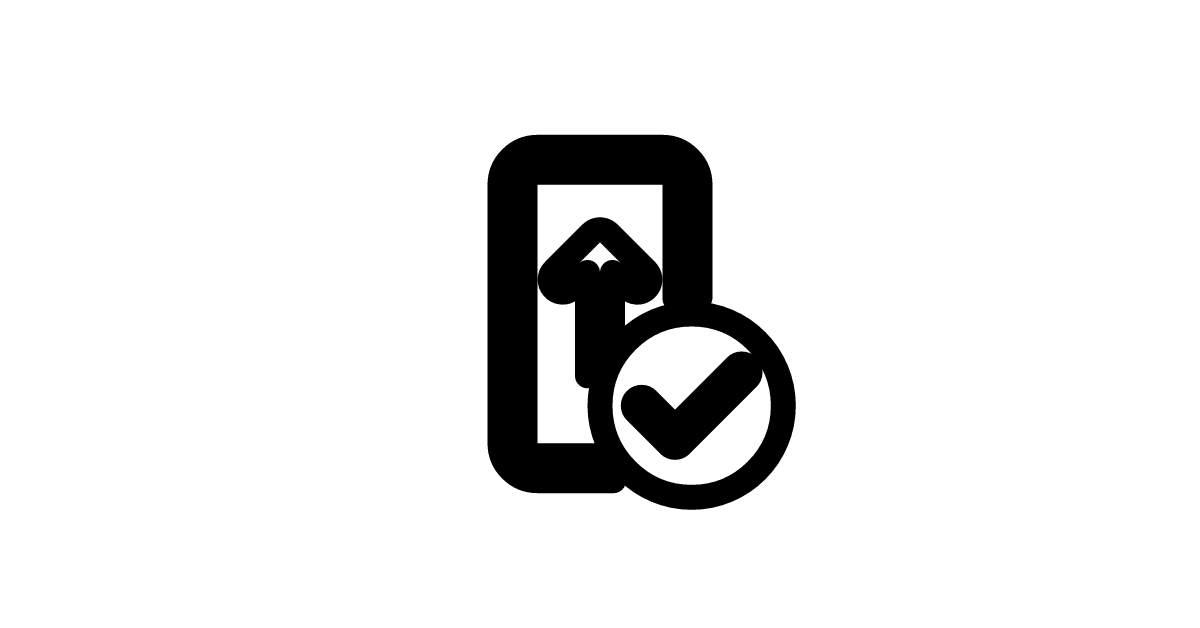 The phone-update-checkmark-24-regular icon represents a phone being updated with new software or features and verified with a checkmark in a regular or outline style.