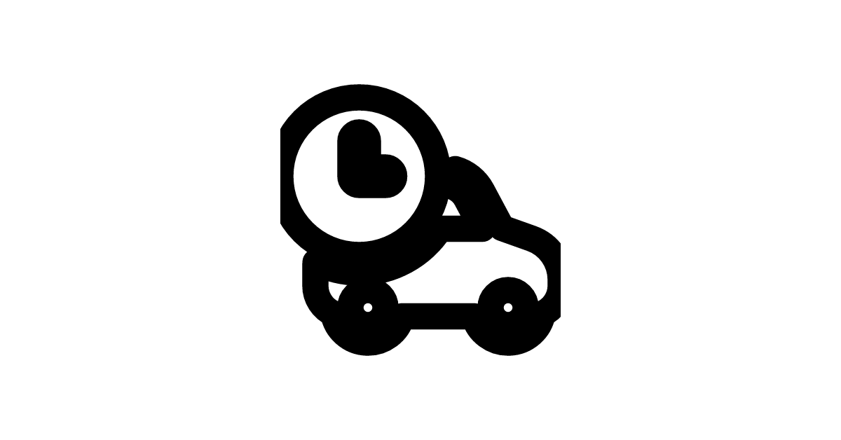 The vehicle-car-profile-ltr-clock-16-filled icon represents a filled car profile view with a clock from the left to right perspective, commonly used in transportation and automotive applications.