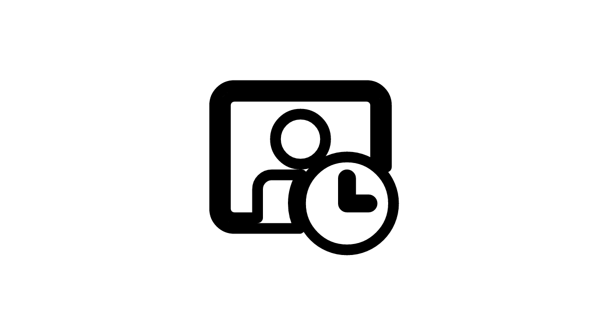 The video-person-clock-28-filled icon represents a video call or meeting with a person, scheduled at a specific time or clock.