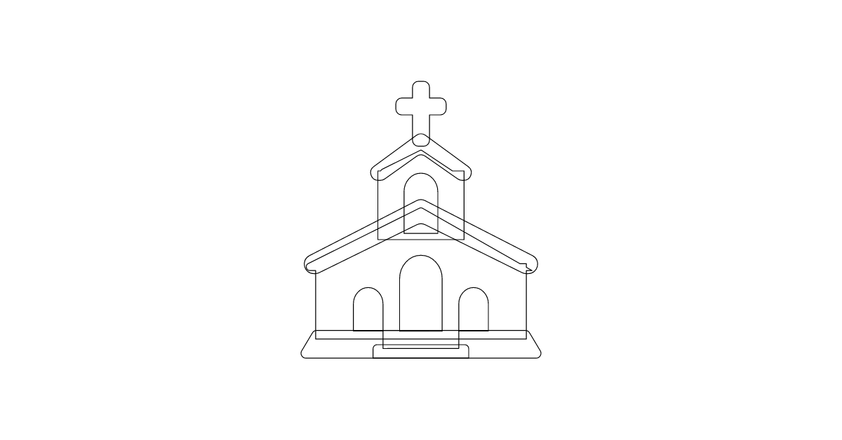 The church icon represents a symbol of a building, specifically a church, often used to convey a sense of religion, spirituality, or community.