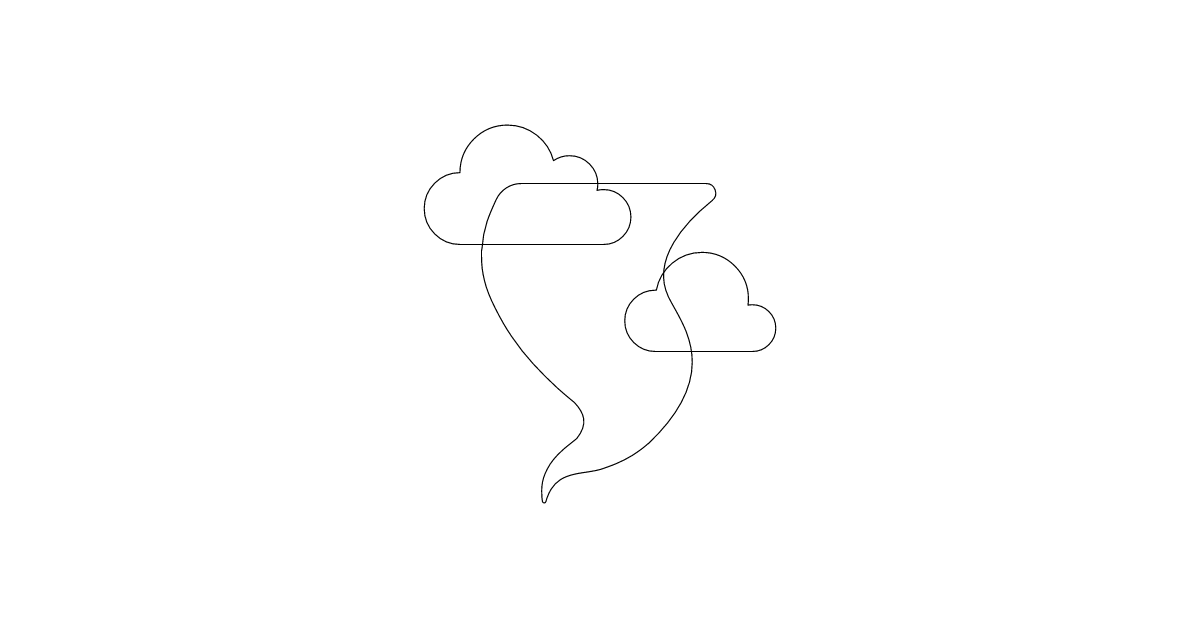 The tornado icon represents a rotating column of air that descends to the ground, causing damage, often associated with severe weather conditions.