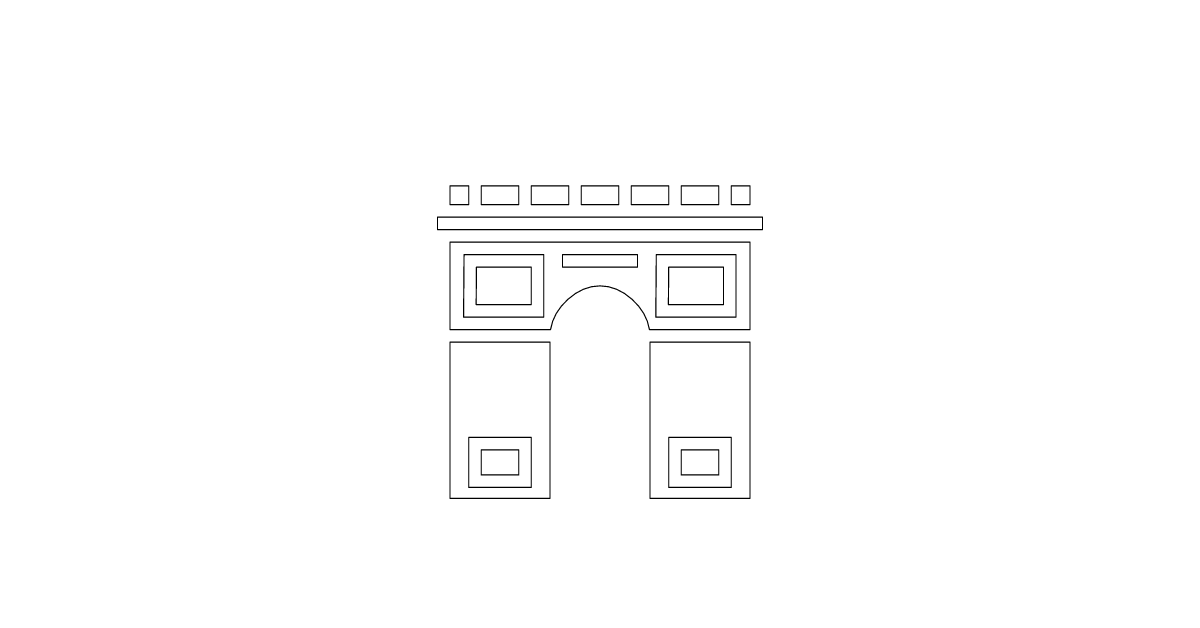 The Arc de Triomphe icon represents a famous monument in Paris, France, symbolizing French history and culture.