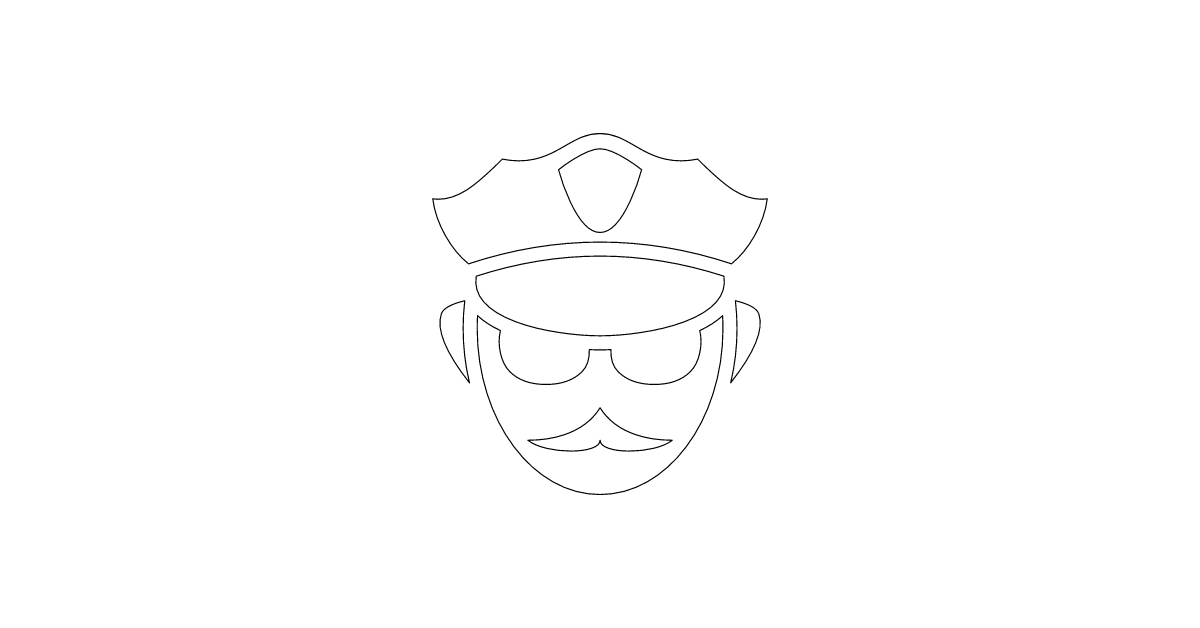 The police-officer-head icon represents a police officer's head or profile, symbolizing law enforcement, authority, and security.