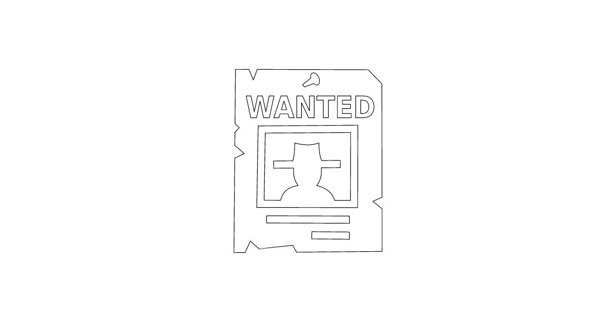 The wanted reward icon represents a notice or poster offering a reward for information leading to the capture or conviction of a fugitive or outlaw.