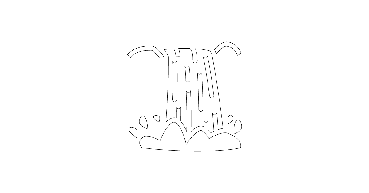 The waterfall icon represents a natural flowing body of water that drops vertically from a steep height, often used to symbolize natural beauty, power, or serenity.