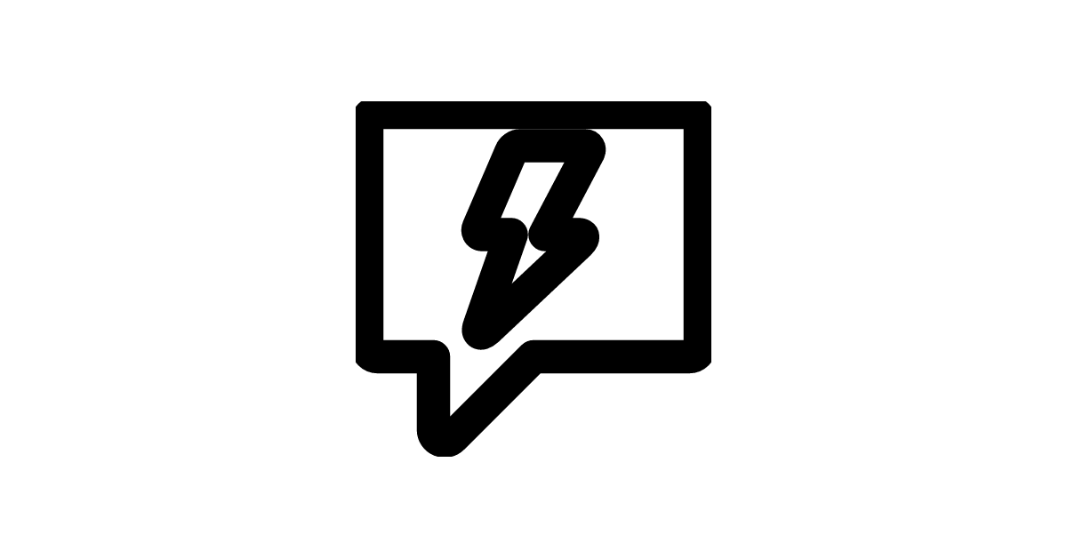 The speech-bubble-lightning-bolt-stroke-16 icon represents an outlined chat bubble with a lightning bolt inside, indicating a sudden or urgent message.