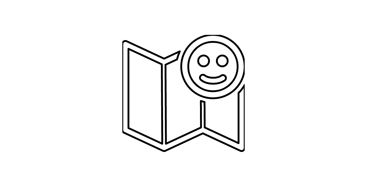 The map-smiley icon represents a map with a smiley face on it, symbolizing a location or place with a positive or friendly connotation.