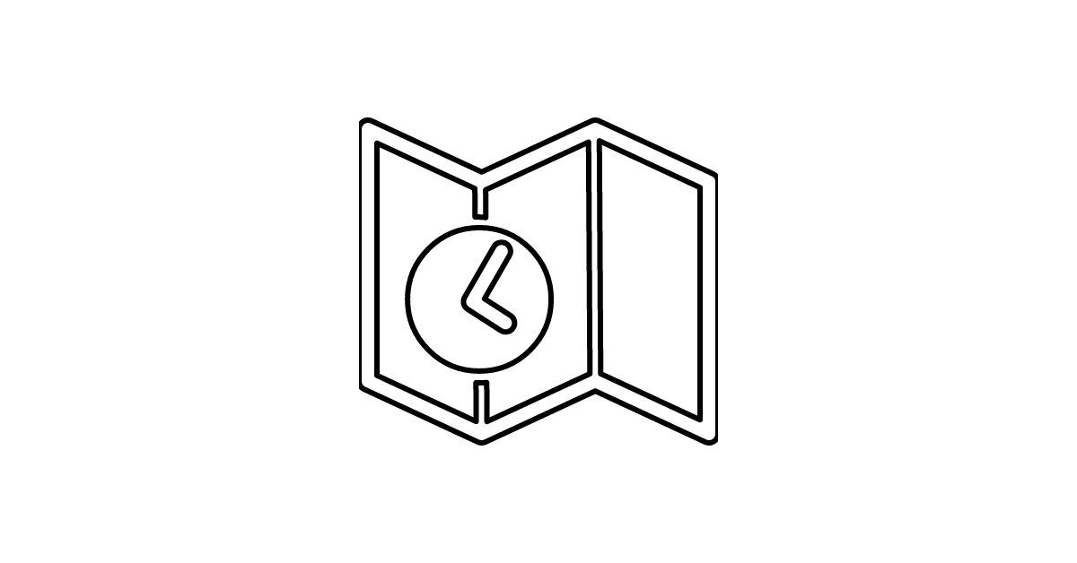 The map-time icon represents a map with a time or clock symbol on it, indicating a location or place associated with a specific schedule or timing.