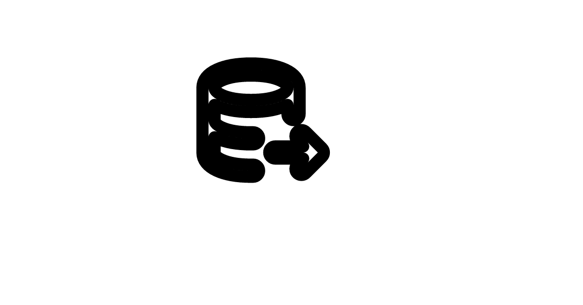 The database-arrow-right icon represents data transfer or migration from a database, often used to symbolize data export, synchronization, or backup processes.
