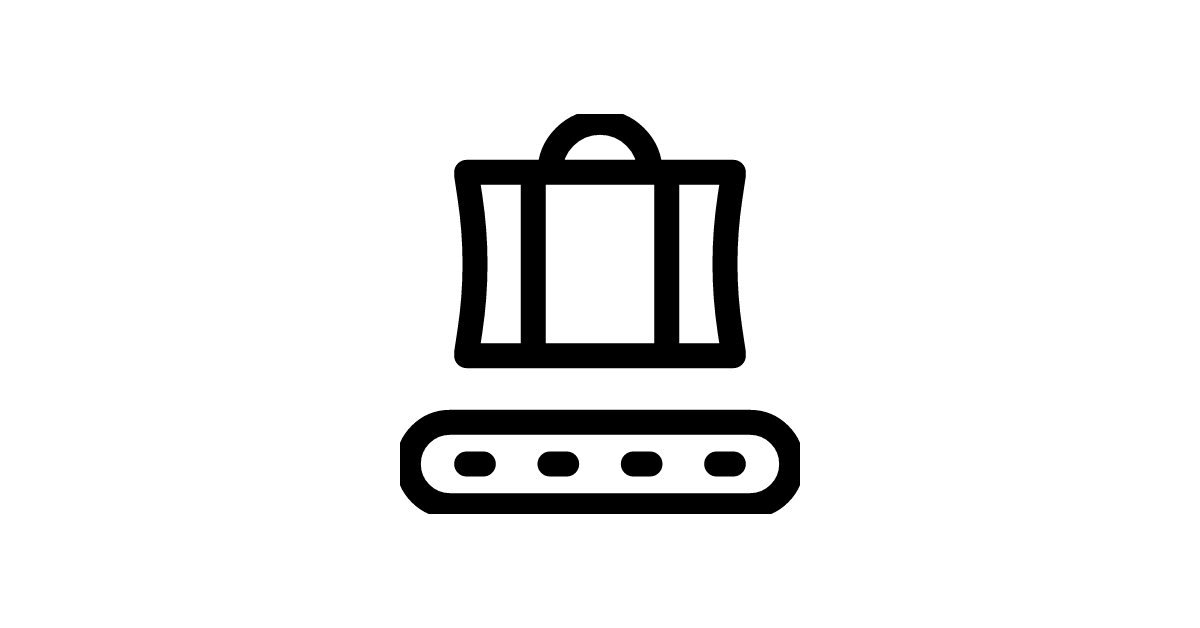 The luggage conveyor belt icon represents a symbol of airport baggage handling.