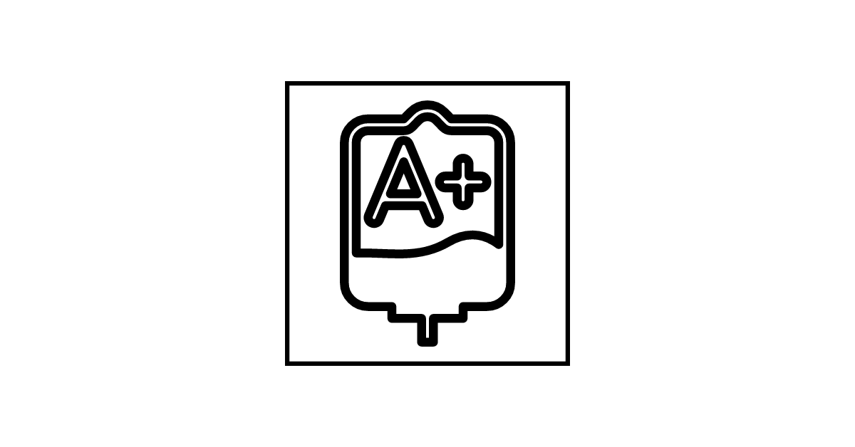 The blood-a-p-negative icon represents a negative Blood Type A classification used for transfusions.