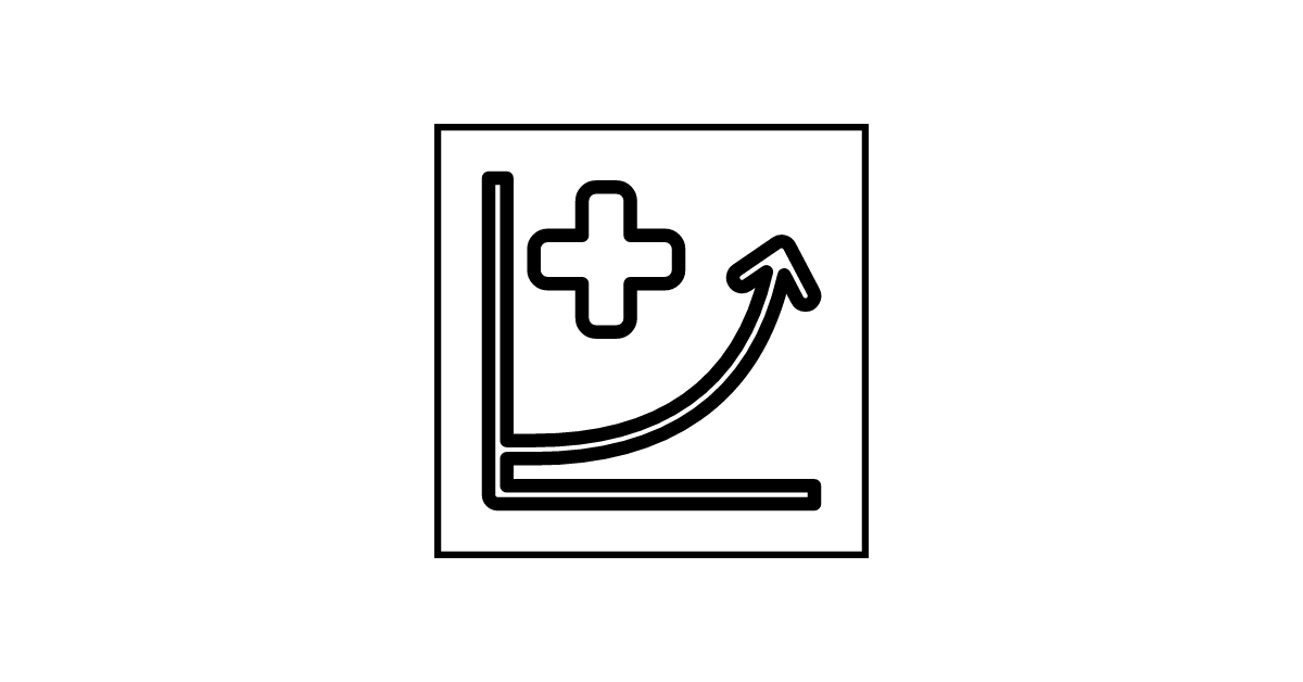 The chart-cured-increasing-negative icon represents a medical chart or graph showing an increase in cured cases with a negative trend.