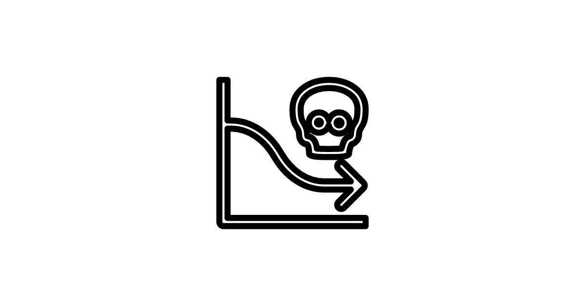 The chart-death-rate-increasing-outline icon represents an outline of an increasing mortality rate chart, used in health and medical contexts to illustrate trends in death rates.