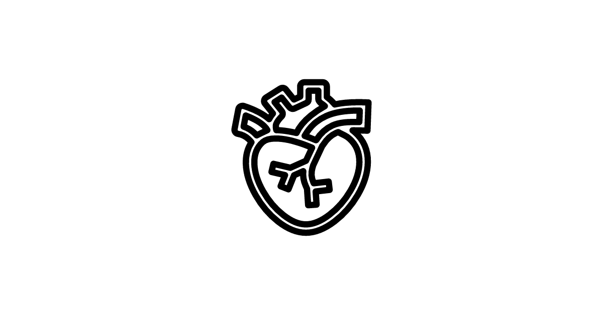 The heart-organ-outline icon represents a stylized outline of a human heart and organ, symbolizing cardiovascular health and medical care.
