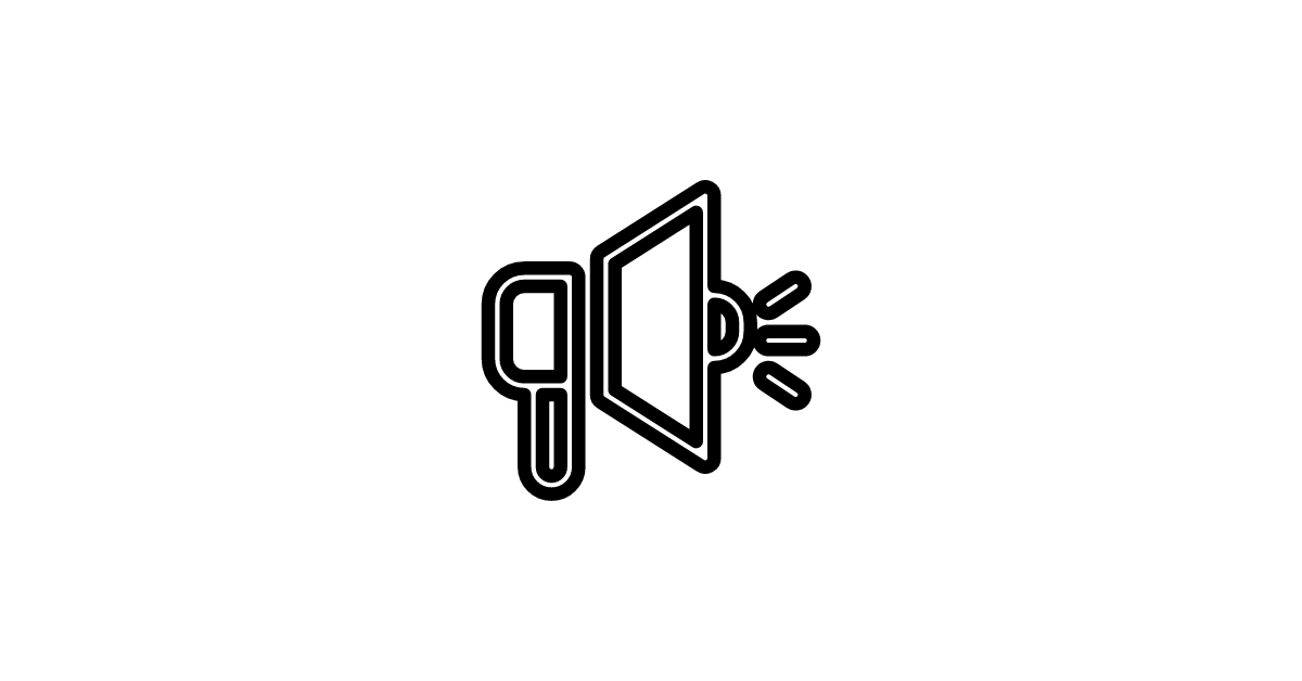 The megaphone-outline icon represents a simple, wireframe version of a megaphone, often used for design or layout purposes.