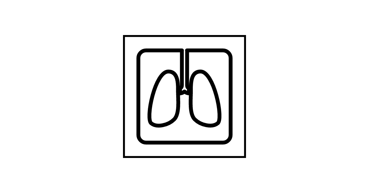 The respirology-negative icon represents the medical specialty of respirology or pulmonology with a negative or absent oxygen flow.