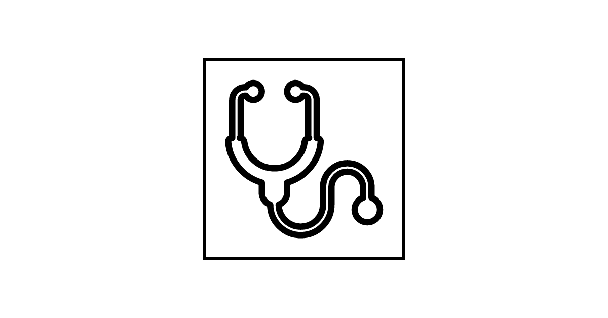 The stethoscope-negative icon represents a medical stethoscope with a negative or crossed-out symbol, indicating a lack of medical care or a warning.