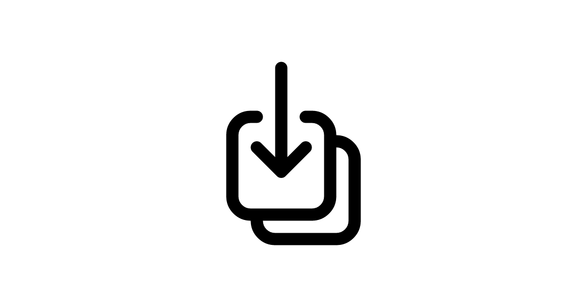 The arrow-down-on-square-stack icon represents batch download actions and saving multiple files simultaneously in modern file management systems.