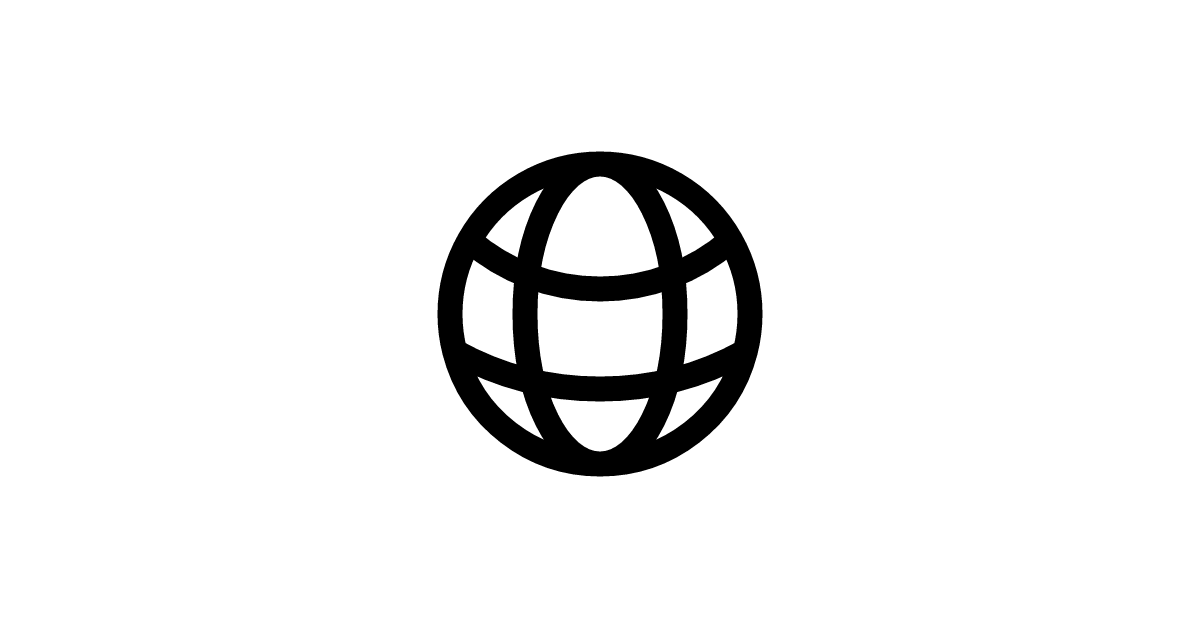 The globe icon represents global reach and international features with its spherical world map design.