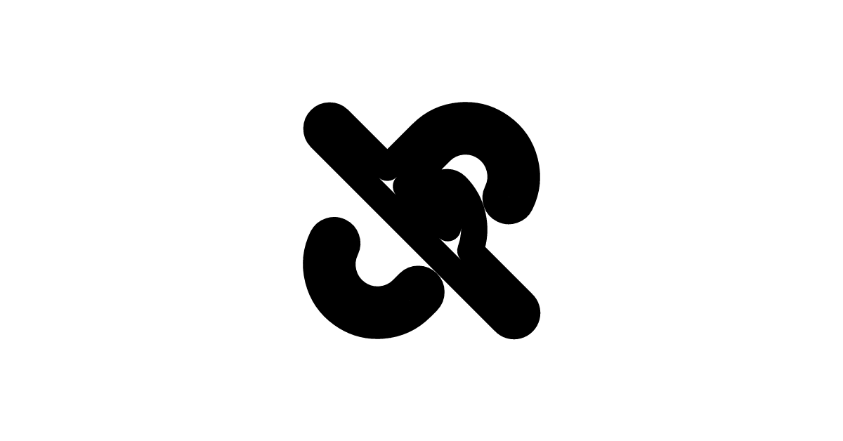 The link slash icon in 16-pixel solid style represents link removal with a compact, filled design optimized for space-constrained unlinking interfaces.
