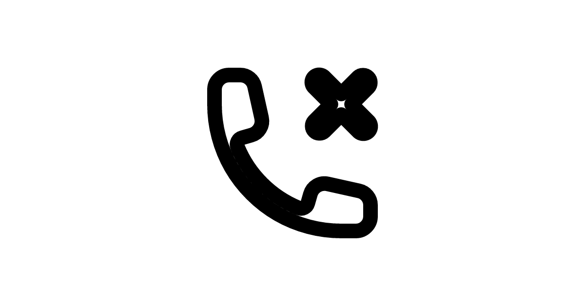 The phone with X mark icon in 20-pixel solid style represents call rejection with a balanced, filled design optimized for standard call management interface elements.