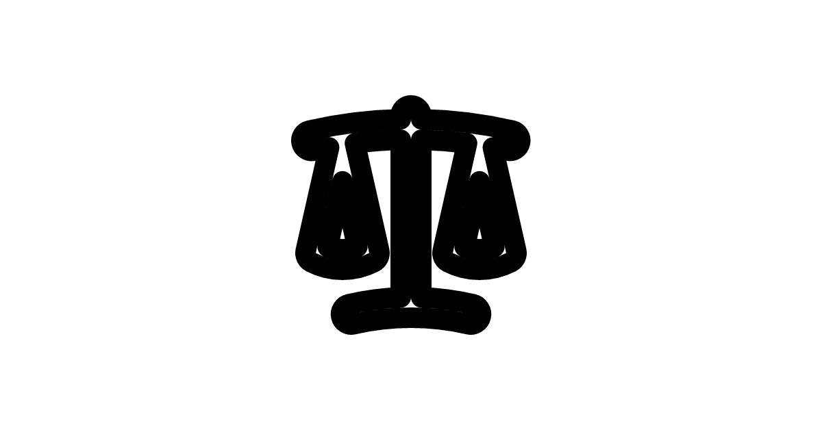 The scale icon represents balance and legal systems with its classic justice scale design showing equilibrium measurement.