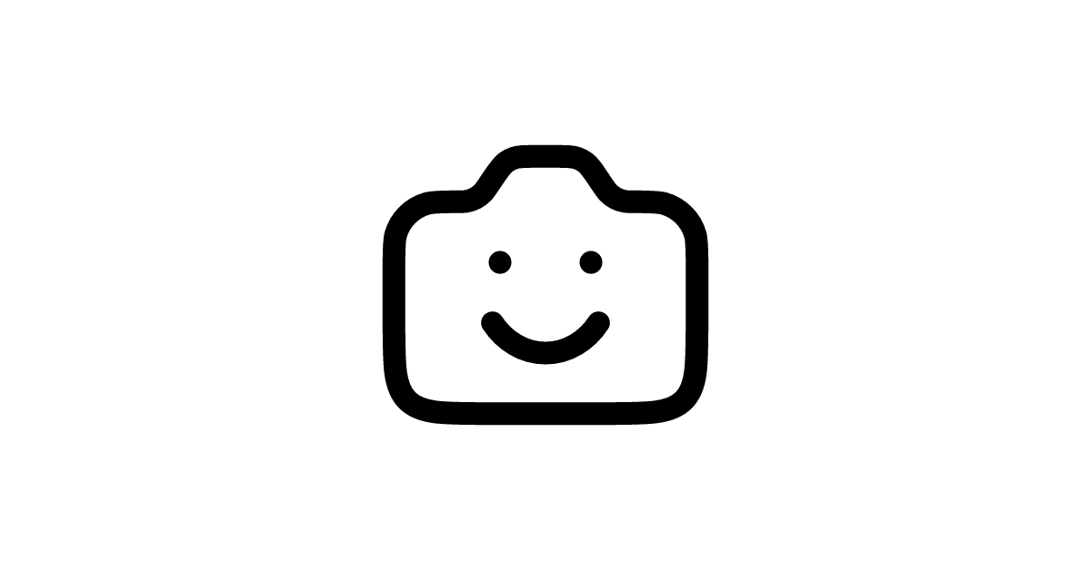 The Camera Smile 01 icon represents a camera with a smiling face, often used to convey a sense of fun and friendliness in user interfaces.