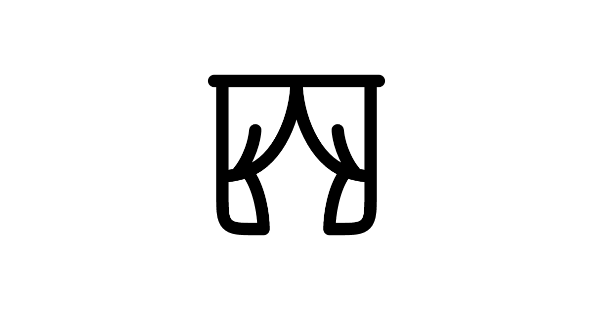 The curtains icon represents a pair of curtains, often used to symbolize a presentation or a media-related action.