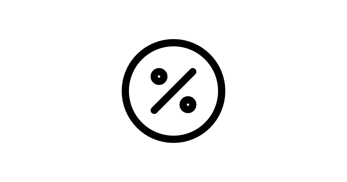 The percent-circle icon represents a percentage or ratio within a circular shape, often used to display proportions or rates.
