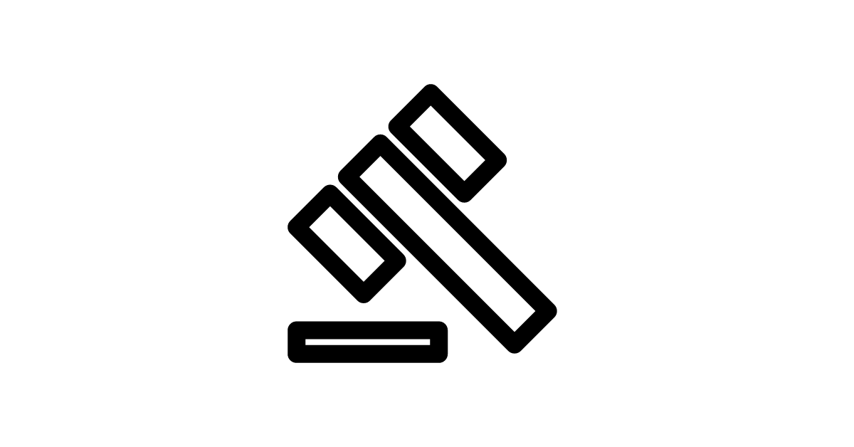 The 'sharp-gavel' icon represents a gavel, used by judges or lawyers in court proceedings.