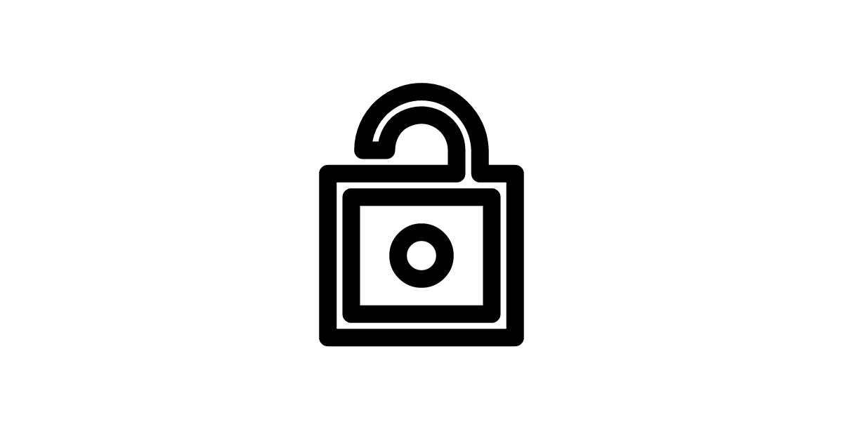 The sharp-lock-open icon signifies an unlocked state or open access, often used to represent freedom from security restrictions.