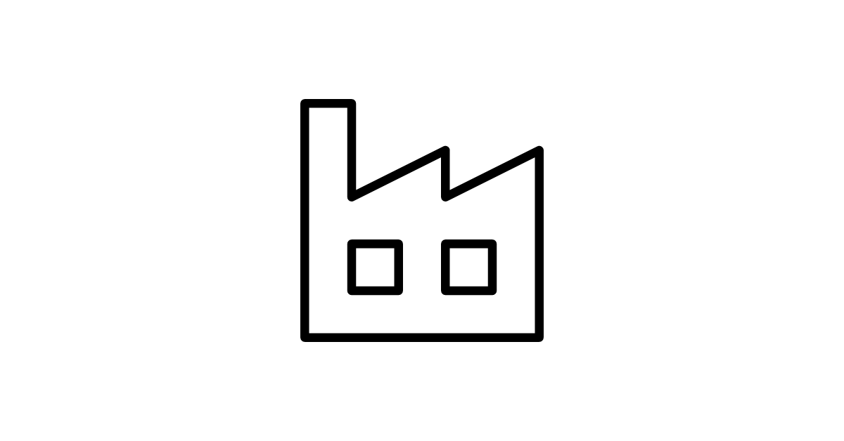 The factory-building icon represents a factory or industrial building, often used to represent industry, manufacturing, or production.