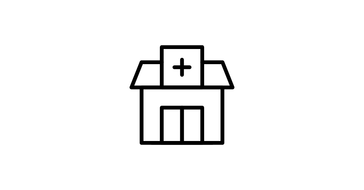 The hospital-two icon represents a medical facility with two distinct sections or departments.