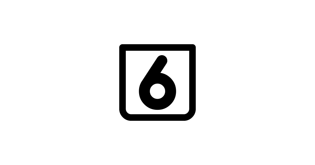 The number-6-square-thin icon represents the digit 6 in a thin or minimal square format, commonly used in user interfaces and digital design.