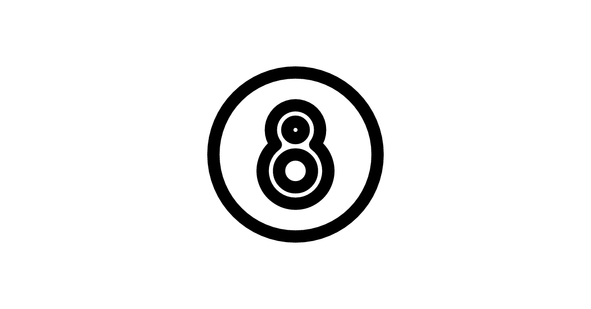 The number 8 circle fill icon represents the digit 8 enclosed in a filled circular shape, providing a solid and complete visual representation in digital interfaces.