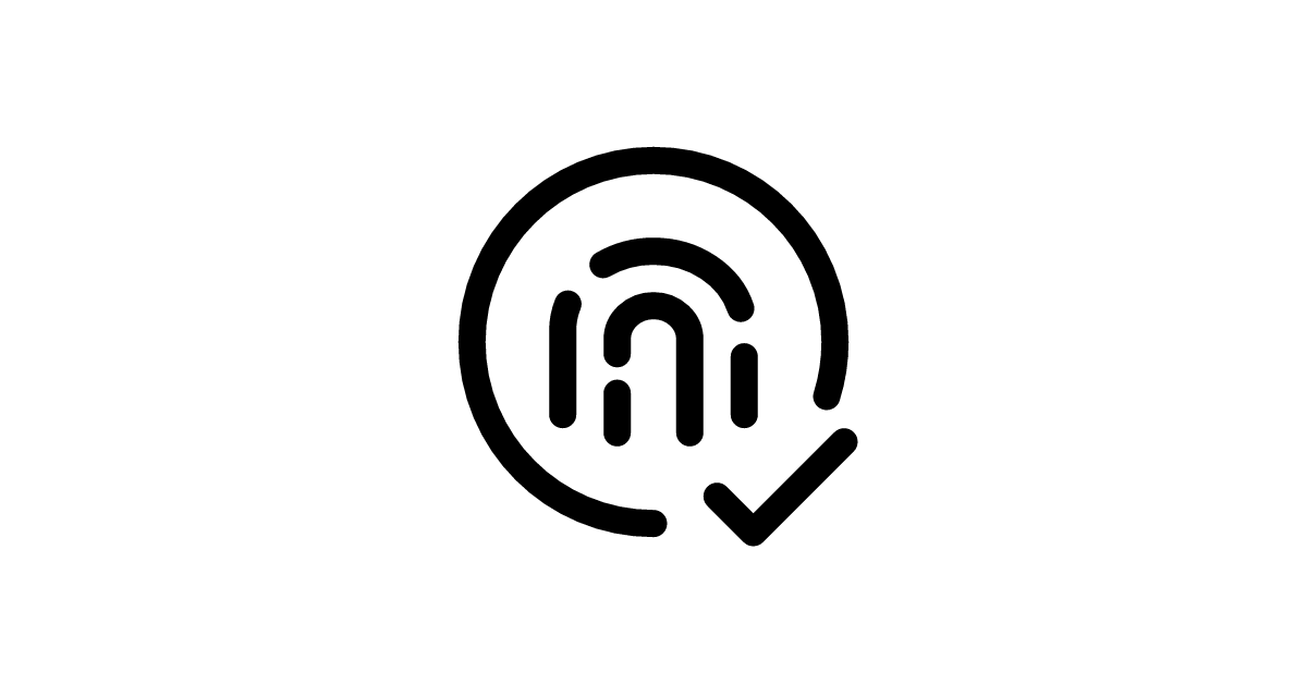 The fingerprint-check-circle icon represents a verified biometric authentication method commonly used in digital interfaces to signify secure and confirmed identification.